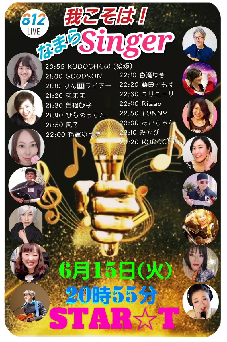 15日、「我こそは!なまらシンガー」のリレー配信に出ます。